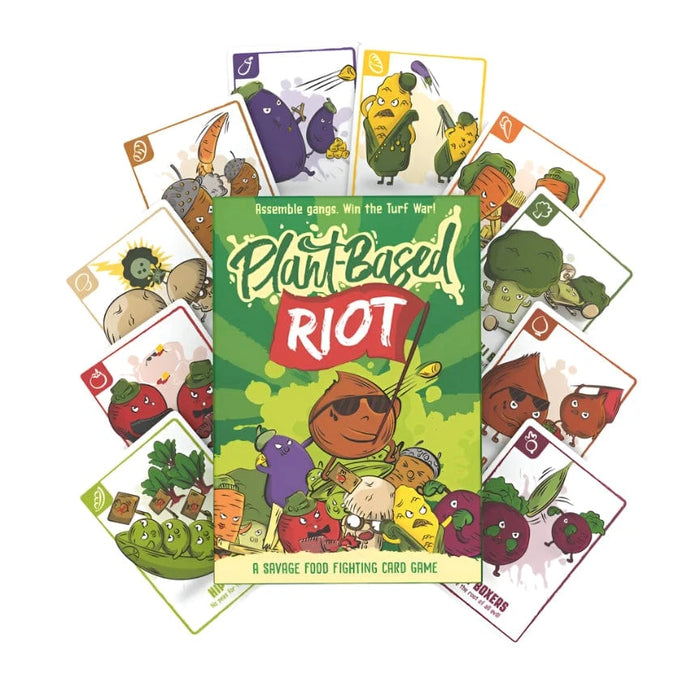 In Plant-Based Riot, your mission is to gather gangs, outsmart enemies, and topple the merciless Cartel to claim victory. Navigate the shady world of villainous vegetables by collecting sets, stealing from opponents, and matching Cartel cards. This intense game blends strategy and cunning with a dash of dark humour—only one player will triumph while the rest face defeat. Get ready to dominate the criminal veggie underworld and prove your supremacy!