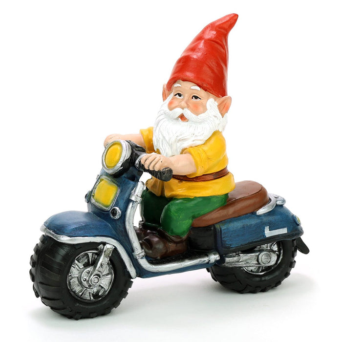 Add a burst of excitement to your garden with this Garden Gnome on Scooter! Crafted from durable polyresin and hand-painted with precision, this energetic gnome combines a passion for gardening with a zest for speed. His striking scooter makes him a fun and eye-catching feature for any outdoor space.
